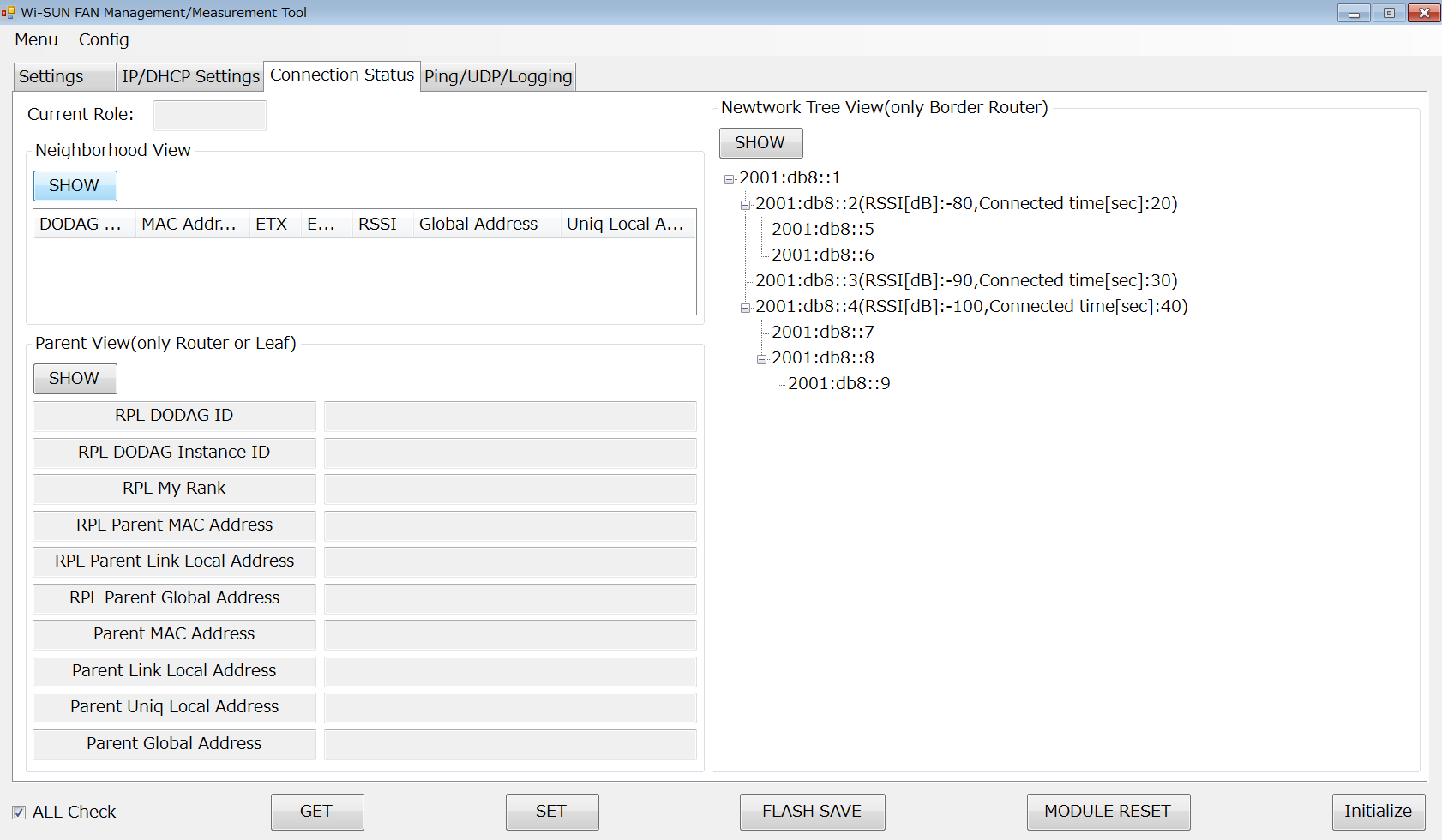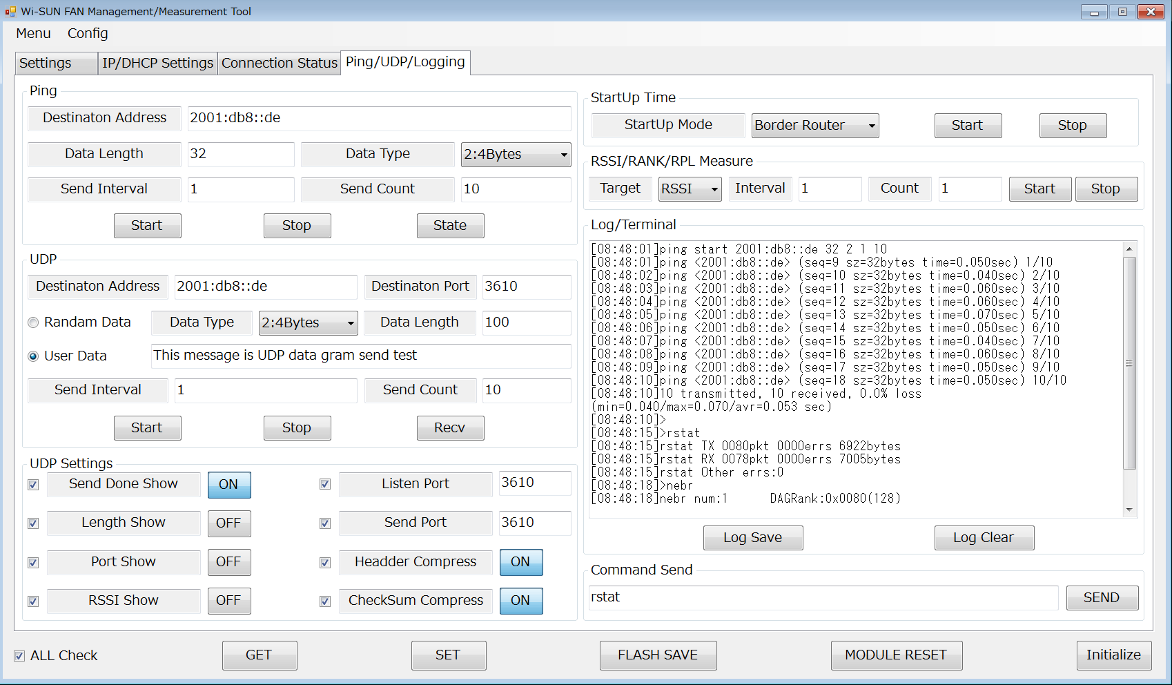 Wi-SUN FANネットワークの性能評価、管理を行うためのWindows上で動作するアプリケーションソフトウェアです。