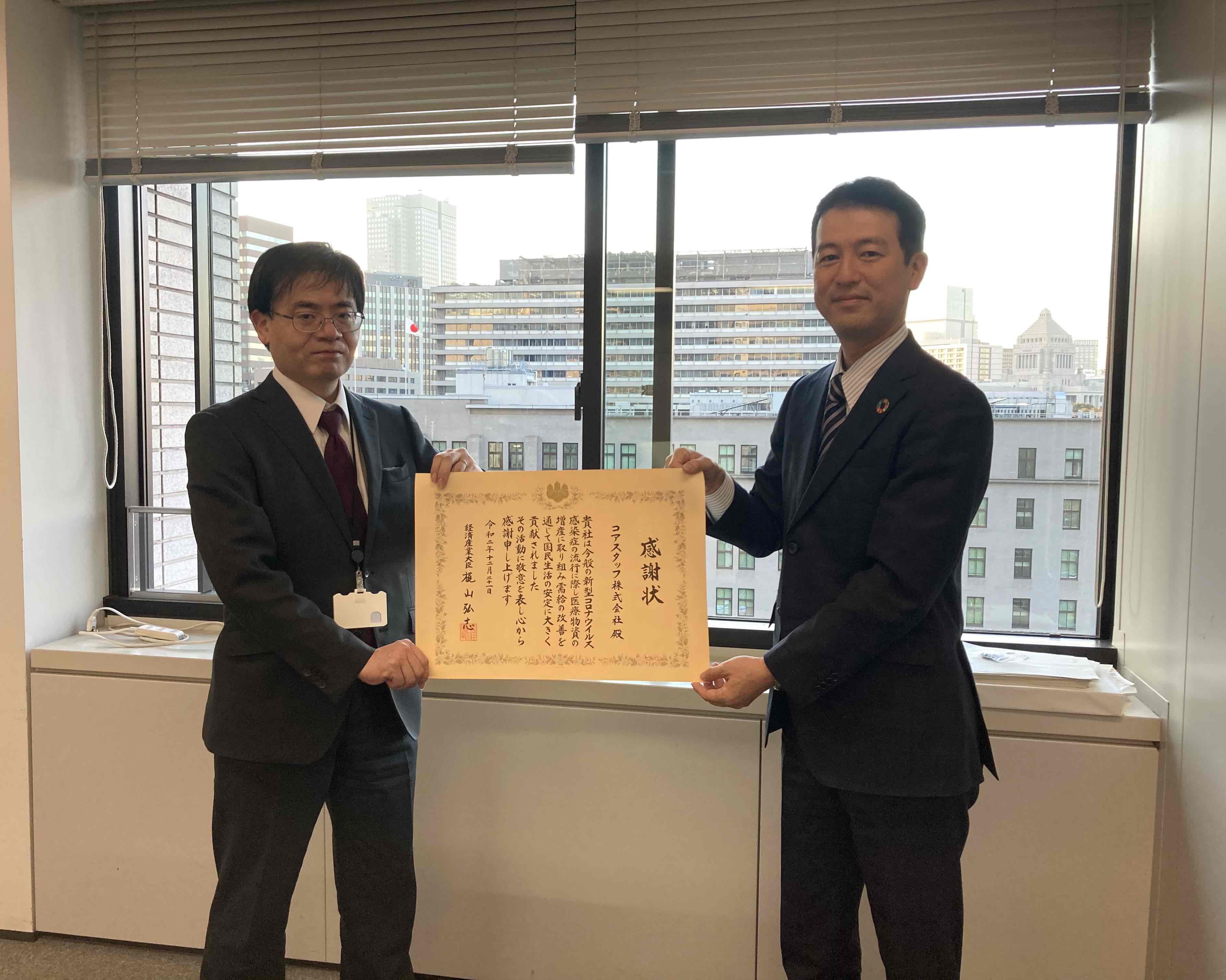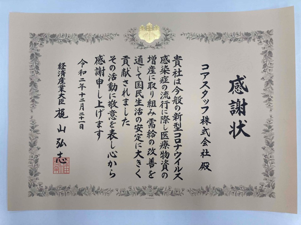 貢献した企業の1社として、経済産業省より感謝状を受領いたしました。