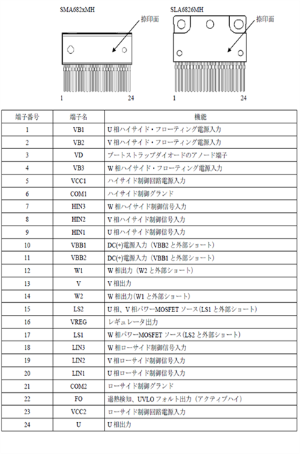 パッケージはZIP24のフルモールドタイプとアルミ放熱版付きタイプを採用し、実装条件に応じてリードフォーミングも選択できます。小~中容量モータのインバータ制御に最適です。