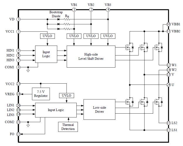 SLA/SMA6820MHシリーズは、スイッチング素子、プリドライブICおよび制限抵抗付きブートストラップダイオードを1パッケージにした、高圧3相モータ用ドライバICです。