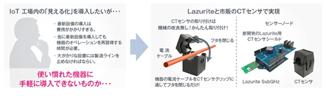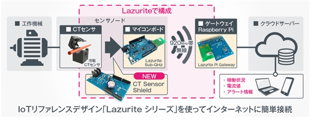 ラピスセミコンダクタは、初心者でも簡単に電子工作やIoTのプロトタイプが作れる、マイコンボード・周辺モジュール・開発環境などを含めたリファレンスデザインシリーズ「Lazurite」を開発し、学生から企業の技術者まで幅広くご活用いただいています。今回はそのLazuriteを使って、簡単に工作機械の稼働状況をモニタリング可能にする「CT Sensor Shield」を開発しました。
