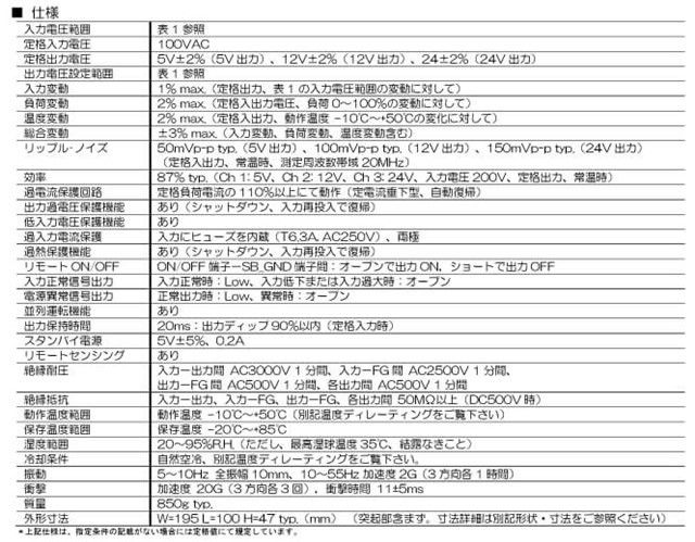・並列接続により出力電流増大可 (90%ディレーティング要)