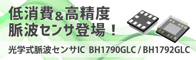 スポーツバンドなどのウェアラブル機器に最適な脈波センサ「BH1790GLC」を開発