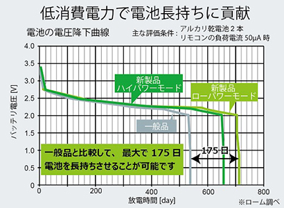 1.低消費電流、低電圧駆動で乾電池の長持ちに貢献