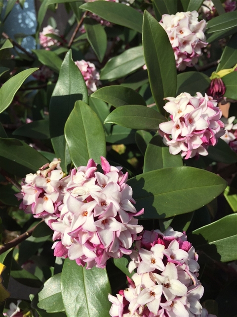 写真の花は沈丁花(じんちょうげ)で、街できれいに咲いていました。
