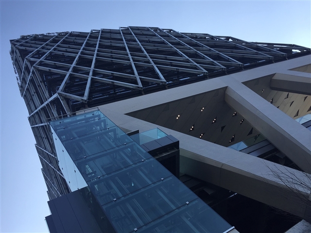 もう一つの特徴はビルの周りに鉄筋が斜めに走っています。