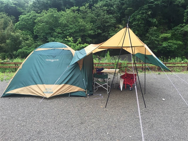 奇跡的にテントを張るときには雨がやみ、朝のたたむときも晴れていてくれました。