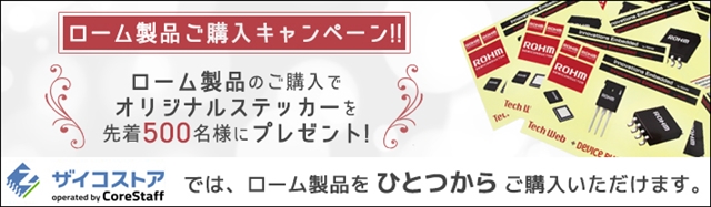「ザイコストア」から、ローム製品をご購入頂いたお客様、先着500名様にロームオリジナルステッカーをプレゼントいたします!
