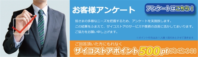 ザイコストアではサービス向上のため、会員様向けにアンケートを実施しております。