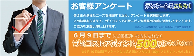 6月9日までにご回答頂いた方にザイコストアポイント500ptプレゼント!