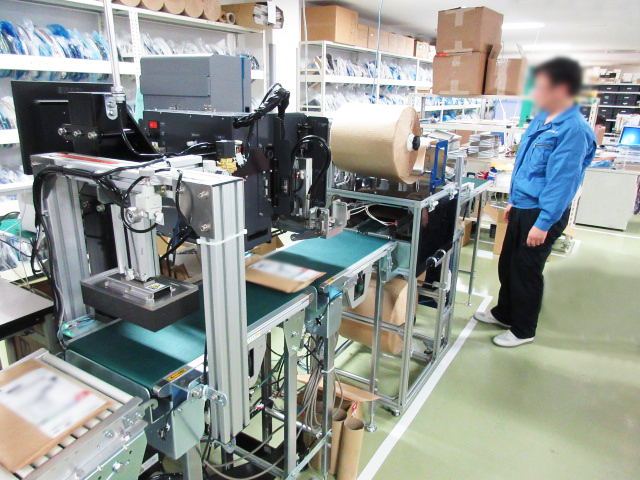 大型出荷に対応して、自動梱包機を導入。